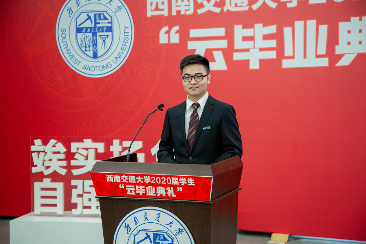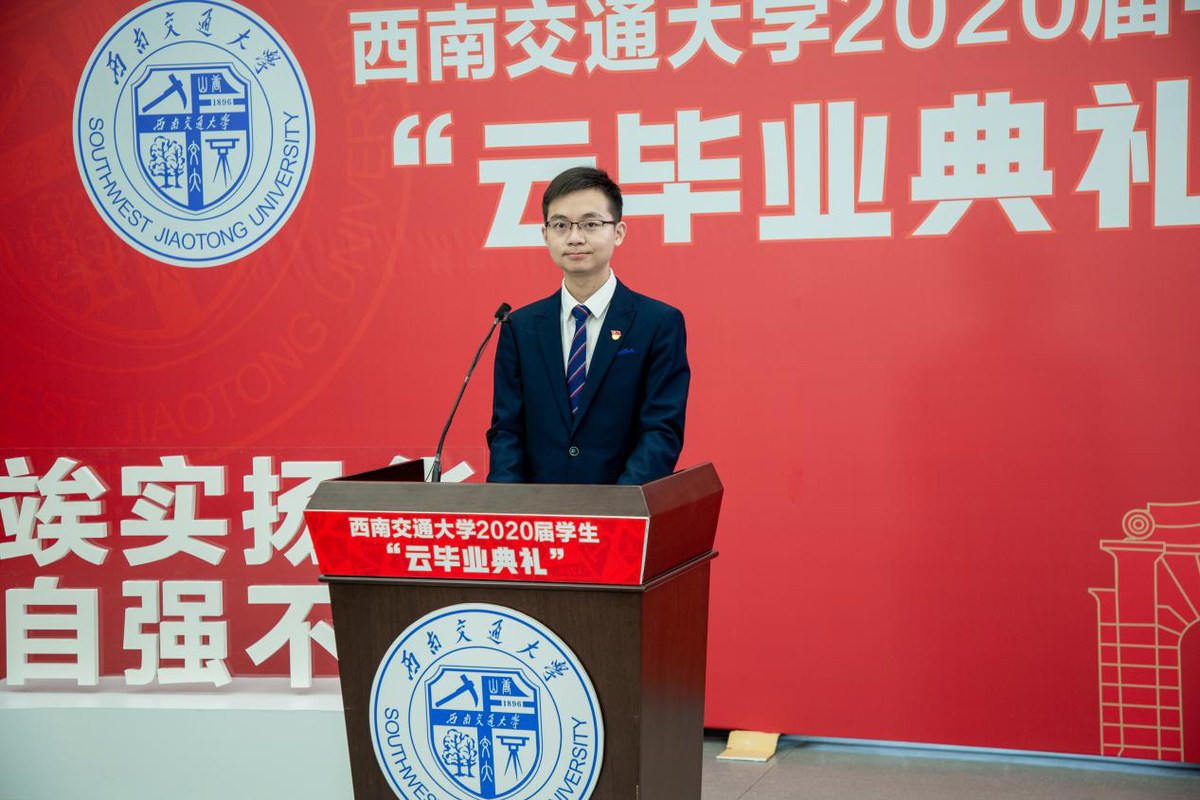 6月10日上午,西南交通大学2020届“云毕业典礼”通过线上“云播”方式举行。本次毕业典礼没有现场观礼的学生和家长,没有宽阔的场馆和热闹的布置,但庄严隆重的毕业氛围没有变,交大对即将远行学子的不舍与牵挂没有变。身在各地的毕业生们心系一处,守候在屏幕的另一端与母校共同走过大学时光的最后节点,也终在母校的最后一次嘱托中,开启人生新篇章。