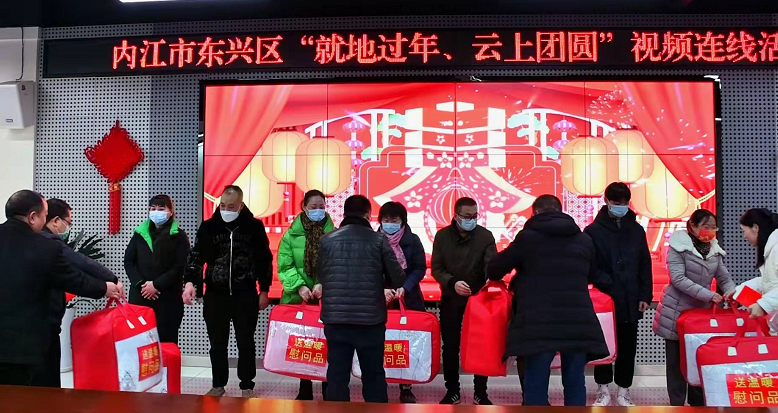 虎年春节的脚步越来越近,1月25日上午,内江市东兴区组织开展了“就地过年,云上团圆”视频连线慰问活动,4名东兴区籍在外农民工的家属和4名在东兴区过年的非东兴区籍农民工代表,通过视频聊天的方式与亲人拉家常,感受年味。