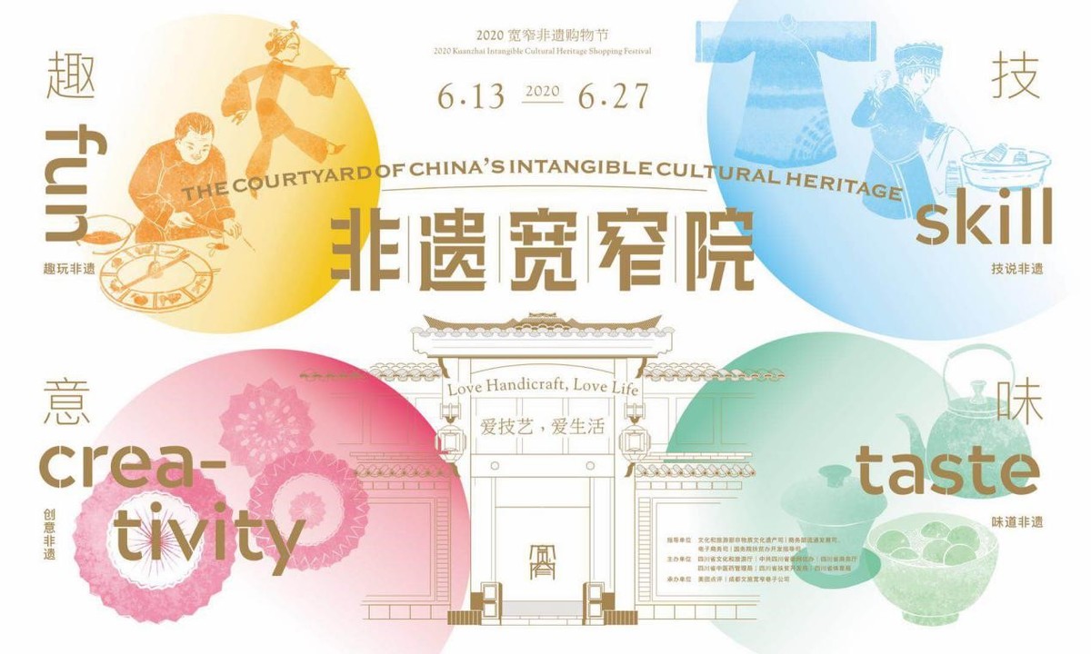 6月13日,由文化和旅游部非物质文化遗产司,商务部流通发展司、电子商务司,国务院扶贫办开发指导司为指导单位,四川省文化和旅游厅主办,美团点评、成都文旅宽窄巷子公司承办的“宽窄非遗购物节”,将在宽窄巷子举行。