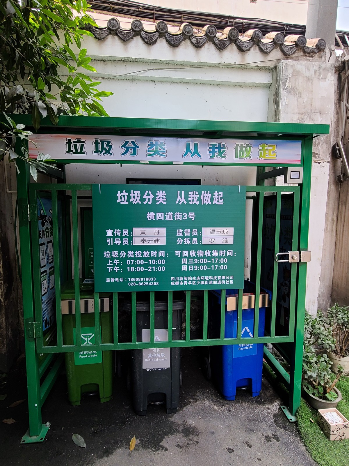 从1998年起,成都开始实施生活垃圾袋装化。垃圾房成了每个居民小区的标配,在教育实践基地的图片中,木头做的垃圾房十分眼熟:一览无余的垃圾池,褪去漆色的木头下半截……