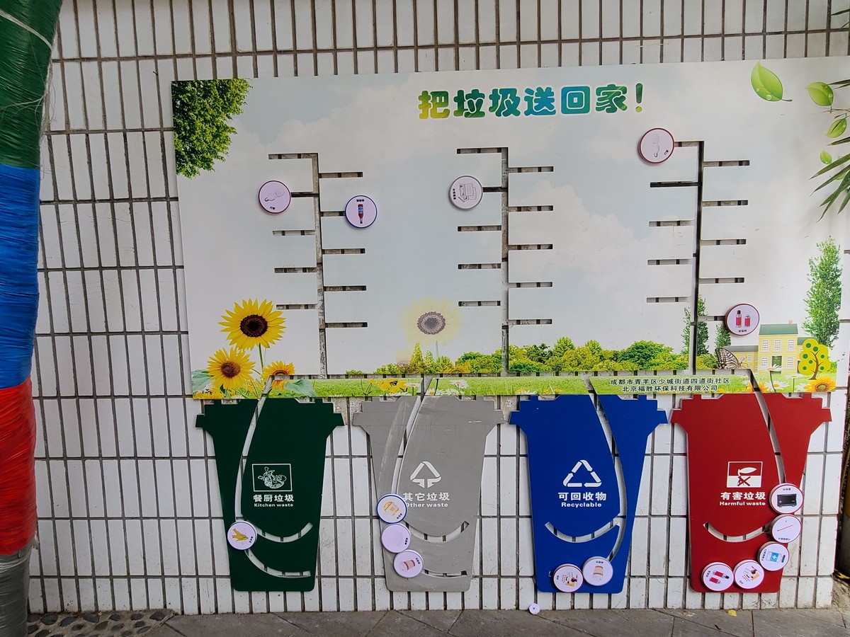 自去年8月以来,这条不为人知的小街成了垃圾分类宣传一条街,吸引了众多慕名而来的人——以小街所在的四道街社区吉祥物“暖小四”和熊猫为“双主角”,犹如一个全方位的场景课堂,墙绘、游戏、教育基地、新型垃圾房等都构成了三维立体学习的场景,令人见之喜悦,习之快速。