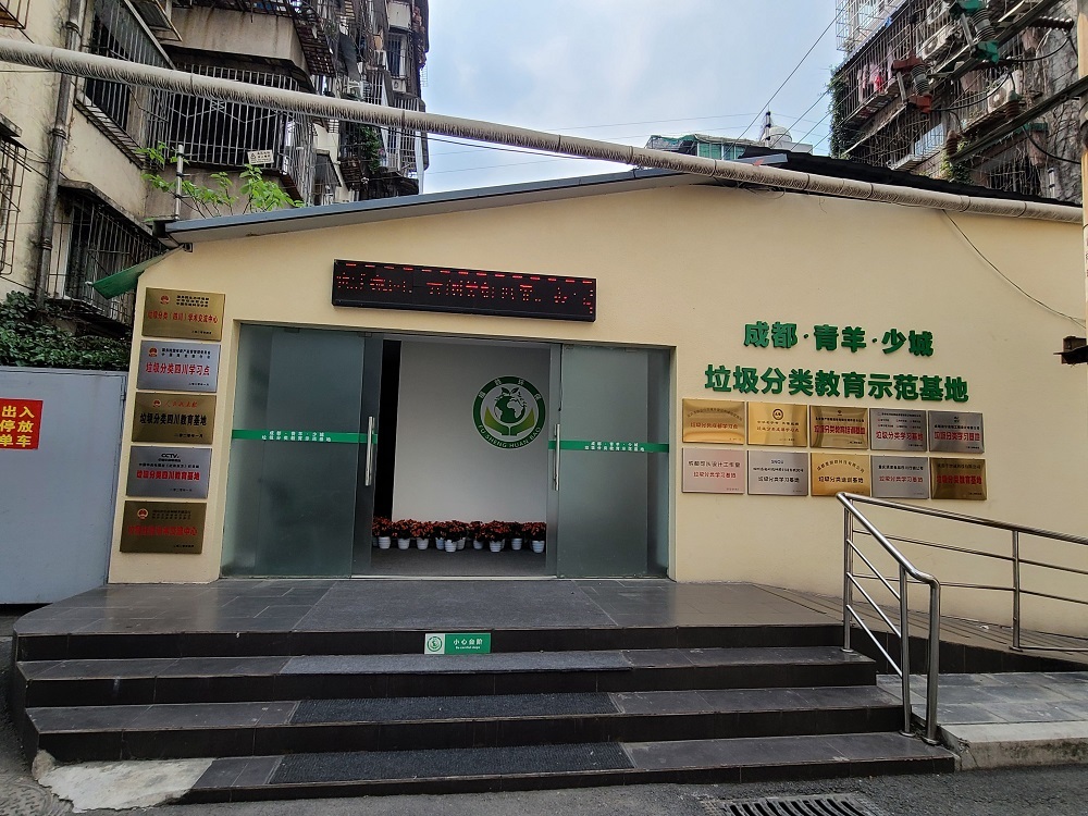 “这里原来是社区的办公用房,大约100平方米。去年,青羊区达标社区创建活动中,我们搬到了新的办公地点,这里就改造成了教育基地,与街区主题融合,深入呈现垃圾分类处理内容。”随着社区讲解员张丹的介绍,走过入口屏风,屋内悬挂着从国家、四川到成都关于垃圾分类的决策文件等,以及四道街社区的各类活动图文展示等。