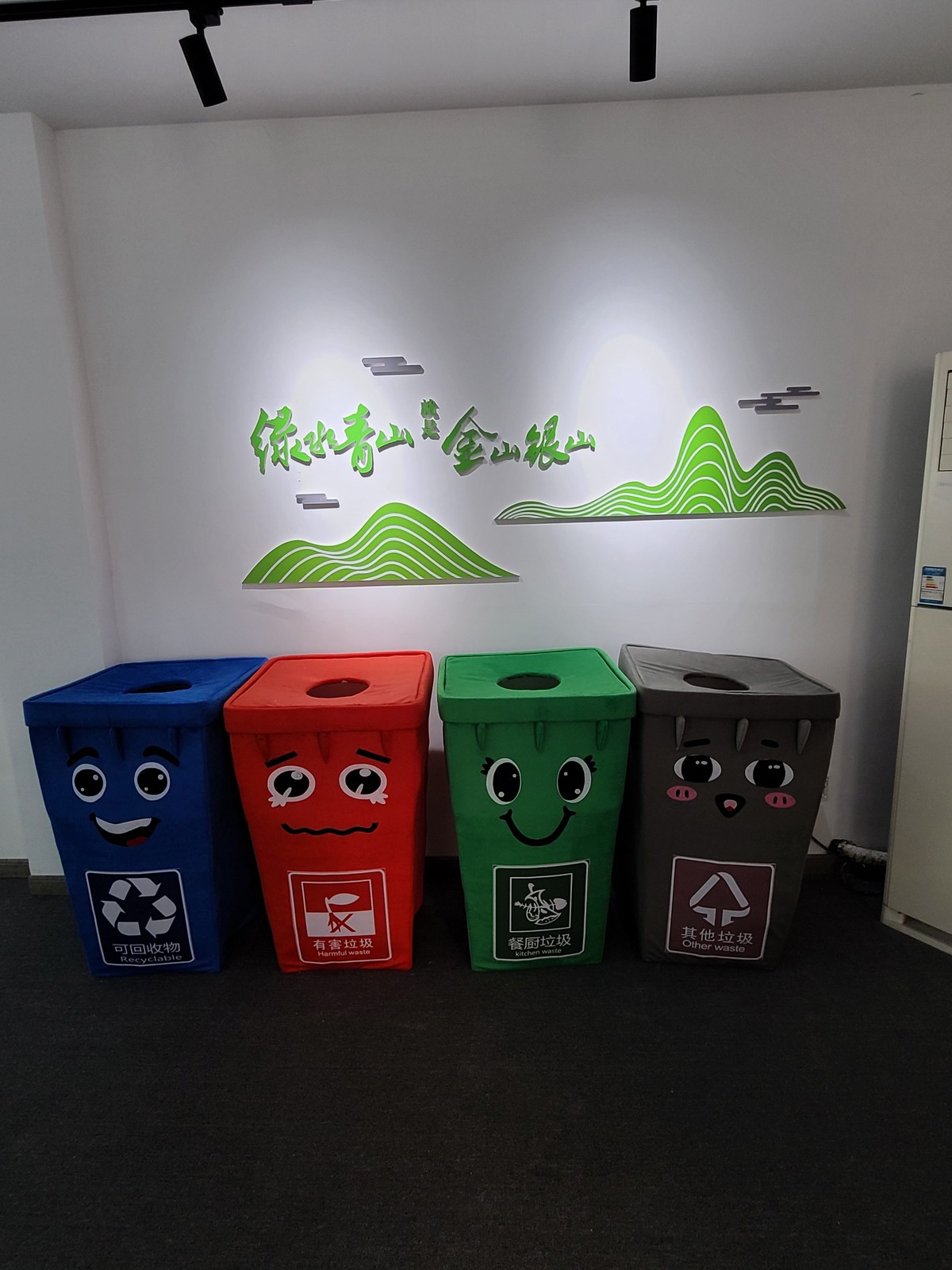 最有趣的,是右侧的游戏空间。靠墙摆放的4个红、蓝、绿、灰垃圾桶,代表成都垃圾分类的4大类:有害垃圾、餐厨垃圾、可回收垃圾、其他垃圾。它们不是真的垃圾桶,而是用以角色扮演的游戏道具——参与者可将其套在身上,伸出头手,寻找对应的垃圾物卡片,以此来熟悉和训练垃圾分类。“幼儿园老师把课堂搬到这里,小朋友玩得很嗨”,张雪莉说,社区联合基地运营方,把社区的亲子活动、学生实践等都移进了这个课堂,效果明显。