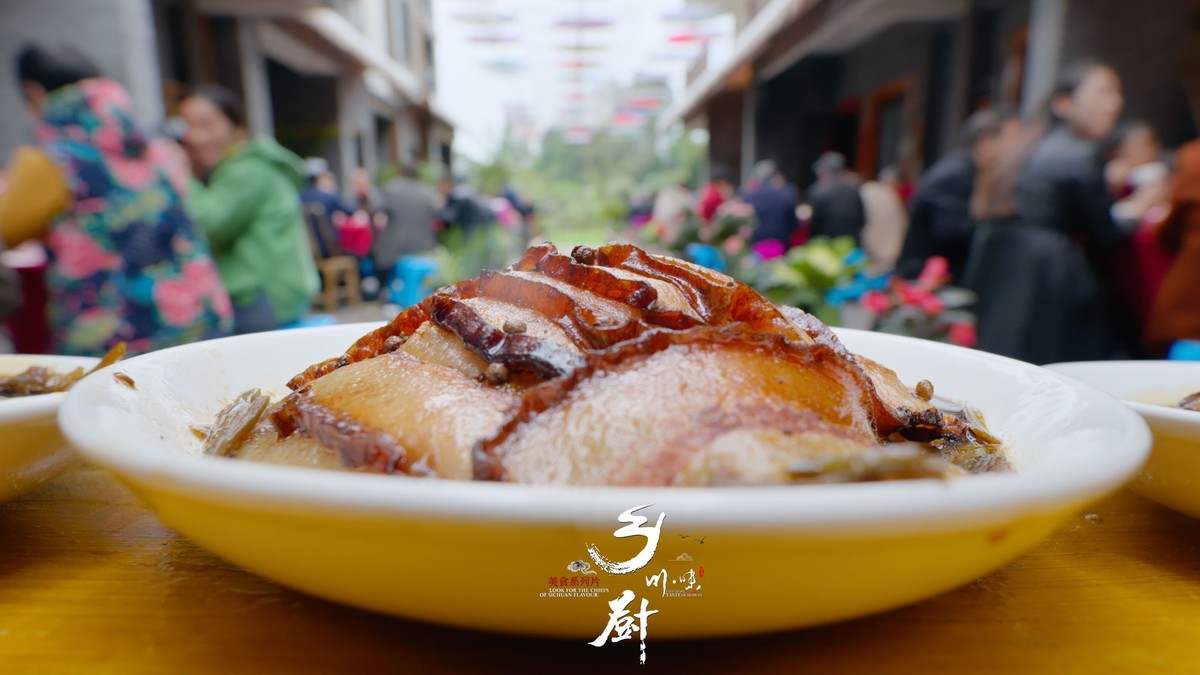 随着交通物流和社会的发展,许多过去少见的海鲜等食材也开始出现在普通人家的餐桌上。香碗,是川西坝坝宴中重要的一道传统食材,在当天的乡宴中,厨师们就在香碗中增添了虾等新食材。食材在变、乡宴在变,但人与人之间根植于故土的连接却没有变。正如纪录片中所说:在寥寥几句的饭桌闲谈中,有些喜悦悄悄存放,再度回味时,他们都感受到了那份滋味,从久远的年代走到今天,拥有了忆古而惜今的两份情怀……