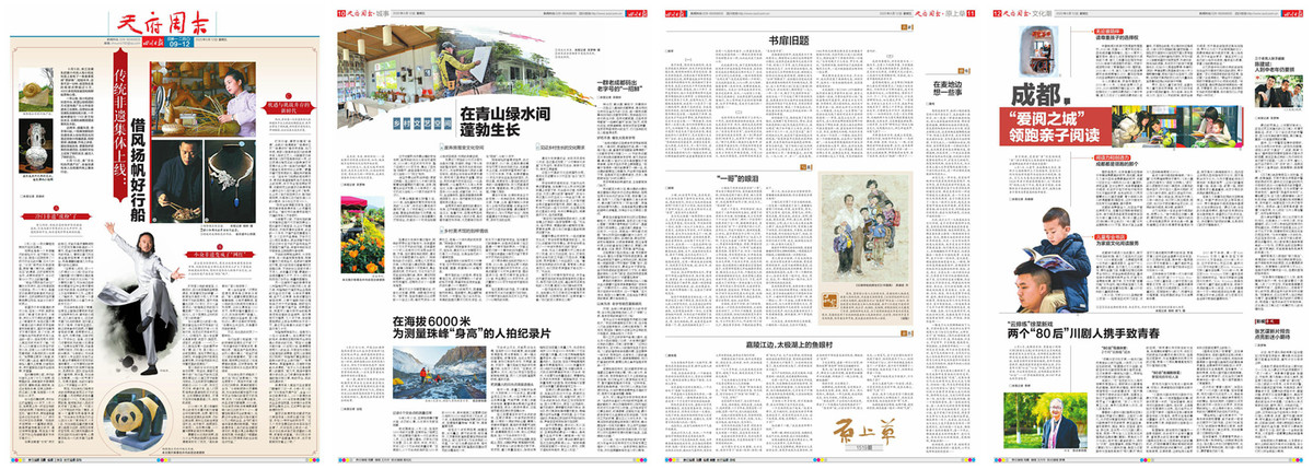 四川日报6月12日第9至12版、文化副刊《天府周末》的版面拼图。