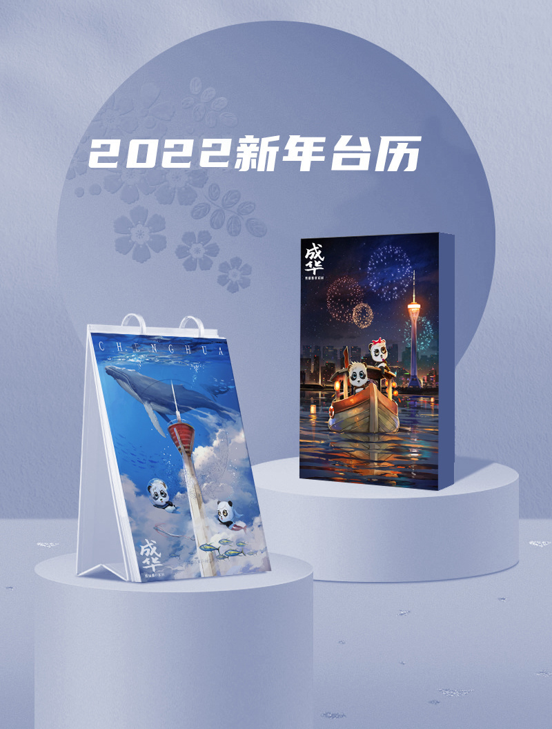 熊猫台历汇集大熊猫、339电视塔、夜游锦江等元素;功夫熊猫摆件,熊猫表情丰富灵动,上色采用手工彩绘,形象鲜活,一招一式栩栩如生。