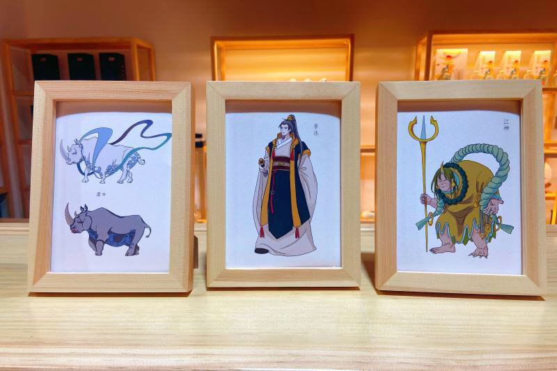 天府之国蜚声世界的李冰文化也有伴手礼呈现。都江堰市推荐的李冰治水系列人物动漫装饰画参考大量历史文献结合人物性格特征设计而成,将李冰治水的故事传说与轻松有趣的动漫相结合,共推出11个漫画形象,用于展示和传播李冰文化。