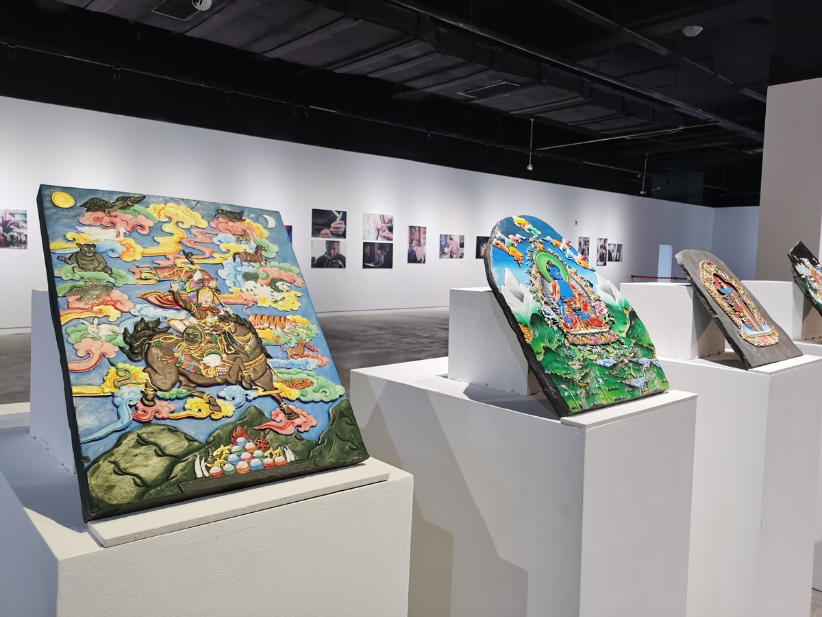 非遗大美看甘孜。 6月12日,由四川省文化和旅游厅指导、甘孜州文化广播电视和旅游局主办、凤眼观城文化和红美术馆承办的“雪域匠心——2020甘孜州非遗影像展与作品展”在成都东湖公园红美术馆揭幕。