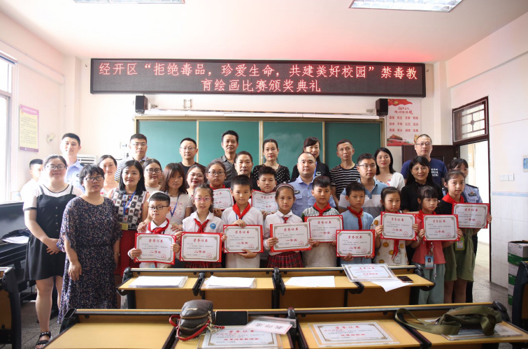 为不断推动青少年禁毒预防教育,关心下一代健康成长,营造良好的禁毒宣传教育氛围,6月12日下午,内江市经开区禁毒委联合辖区各小学共同举办的以“拒绝毒品,珍爱生命,共建美好校园”为主题的“6.26”儿童禁毒教育绘画比赛颁奖仪式在内江市第五小学校阶梯教室举行。