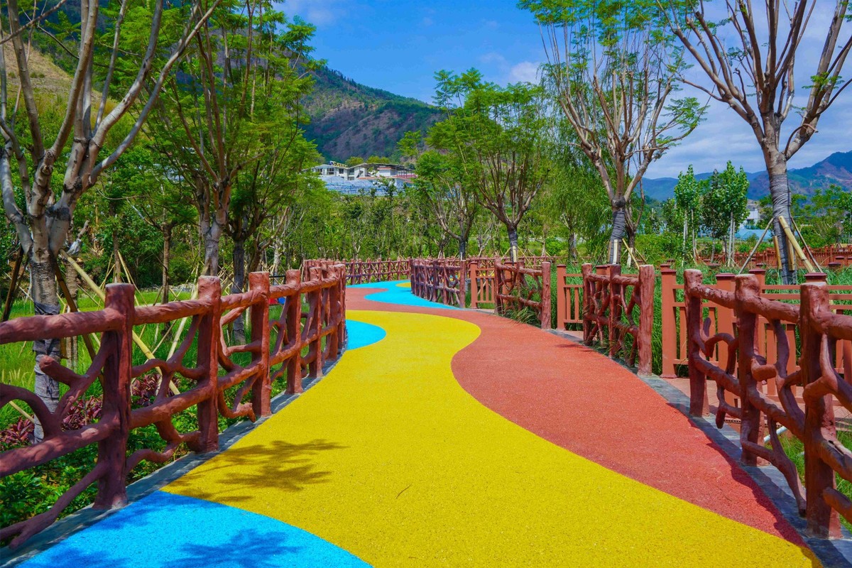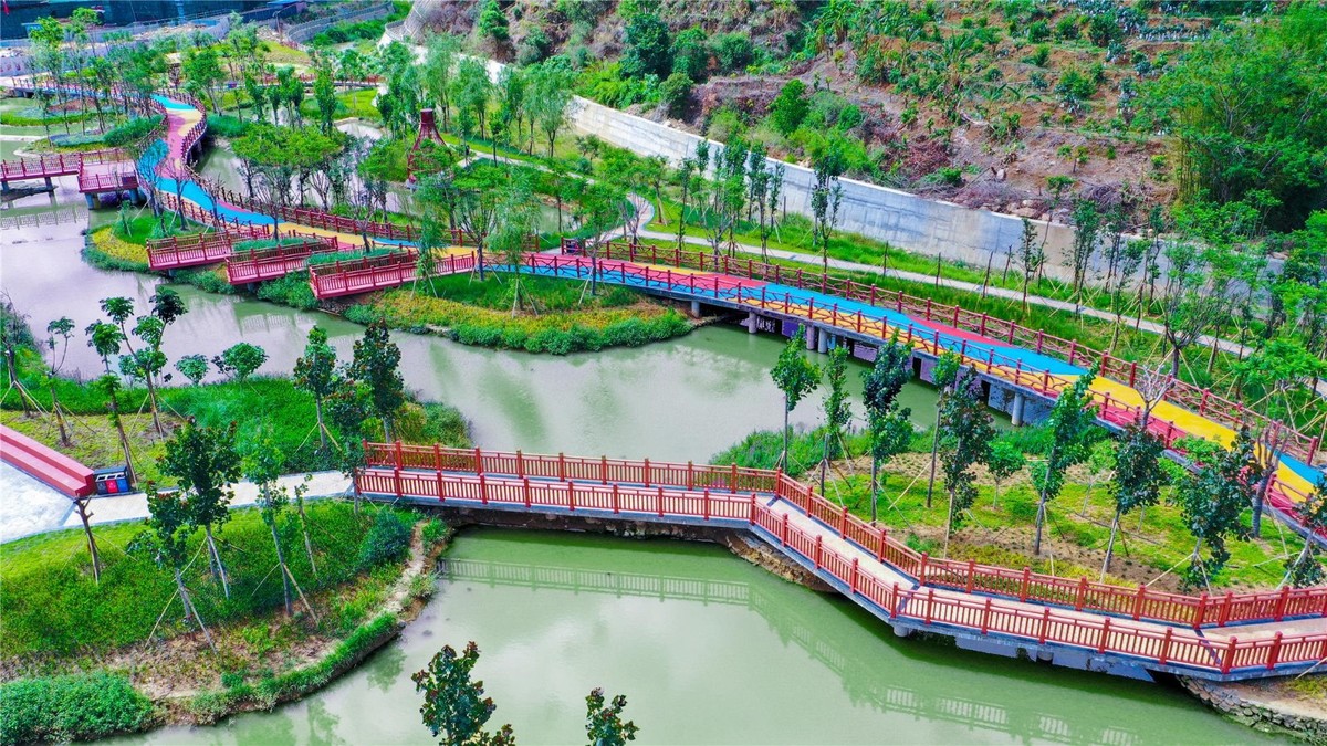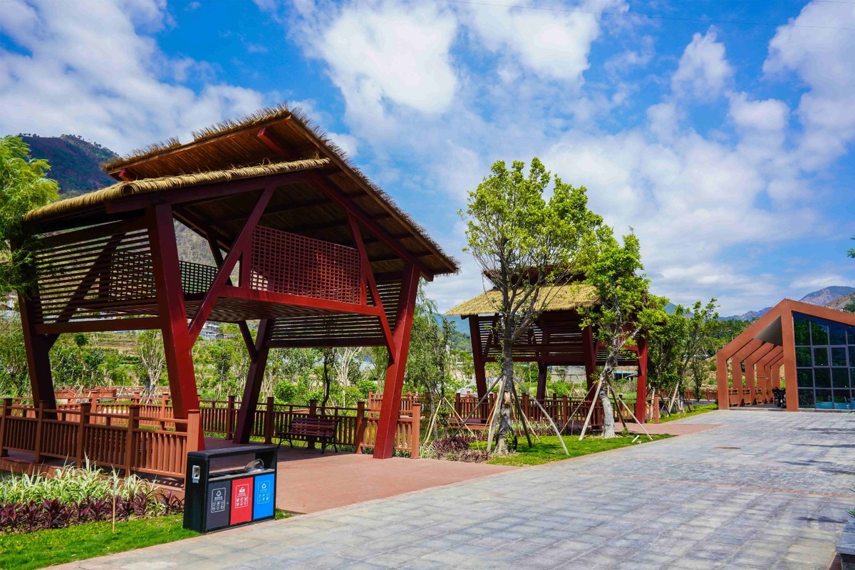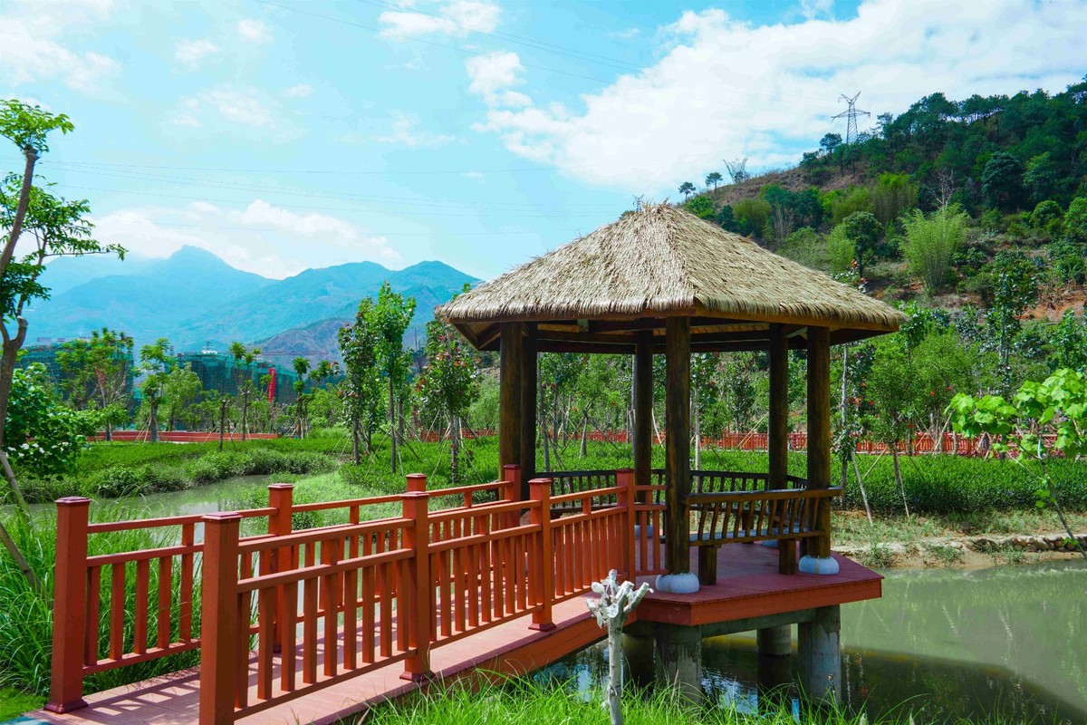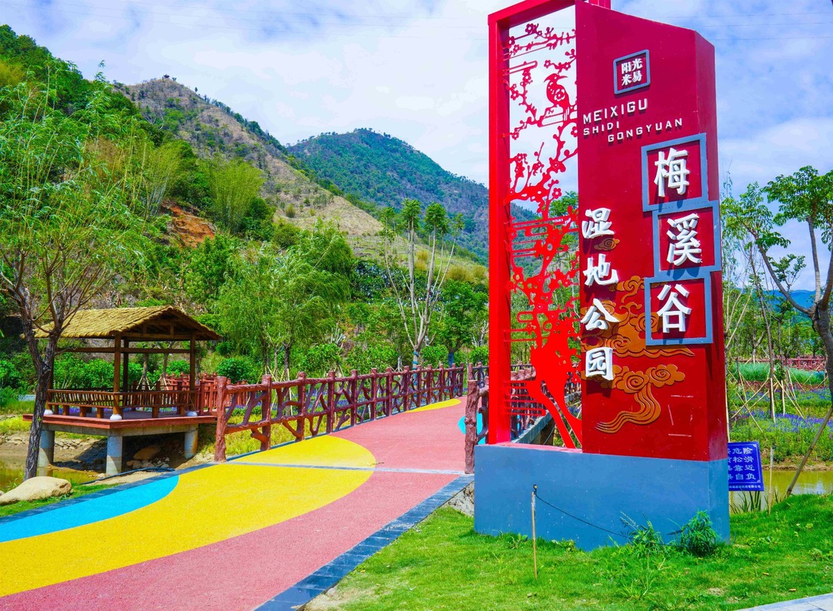 凉亭栈道、小桥流水、浅滩碧草……漫步公园,连片水域送来丝丝凉意,如画美景令人心旷神怡。梅溪谷湿地公园位于米易县草场镇,占地面积约45亩,于2019年8月开始修建,总投资达4000万元,包含了景观亭、拱桥、绿化及湿地水渠等。