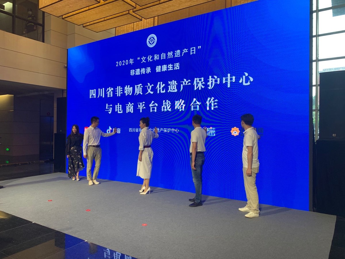 6月13日,四川省非物质文化遗产保护中心与四川苏宁易购销售有限公司、上海寻梦信息技术有限公司(拼多多)、上海携程商务有限公司、字节跳动等签署战略合作协议,四川非遗将携手电商平台公司,深化“非遗+电商”合作模式,共同开拓创新创造新场景、传承传播新空间。汇集了全省300多名非遗传承人、536家非遗店铺及相关企业、5000余款非遗特色产品的139个非遗扶贫就业工坊全部上线展示展销,开启了非遗助力脱贫攻坚新渠道。