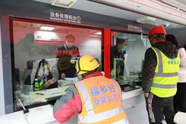 办理银行卡、工资存取、转账汇款、理财咨询……四川大学博物馆群项目工地上,搭起了移动服务柜台,工友们有序排队办理个人金融业务。“平时大家在工地干活忙,没时间到银行办理业务,现在流动银行车开到工地,给我们带来了很多方便。”一名家在外省的工友感触很深。