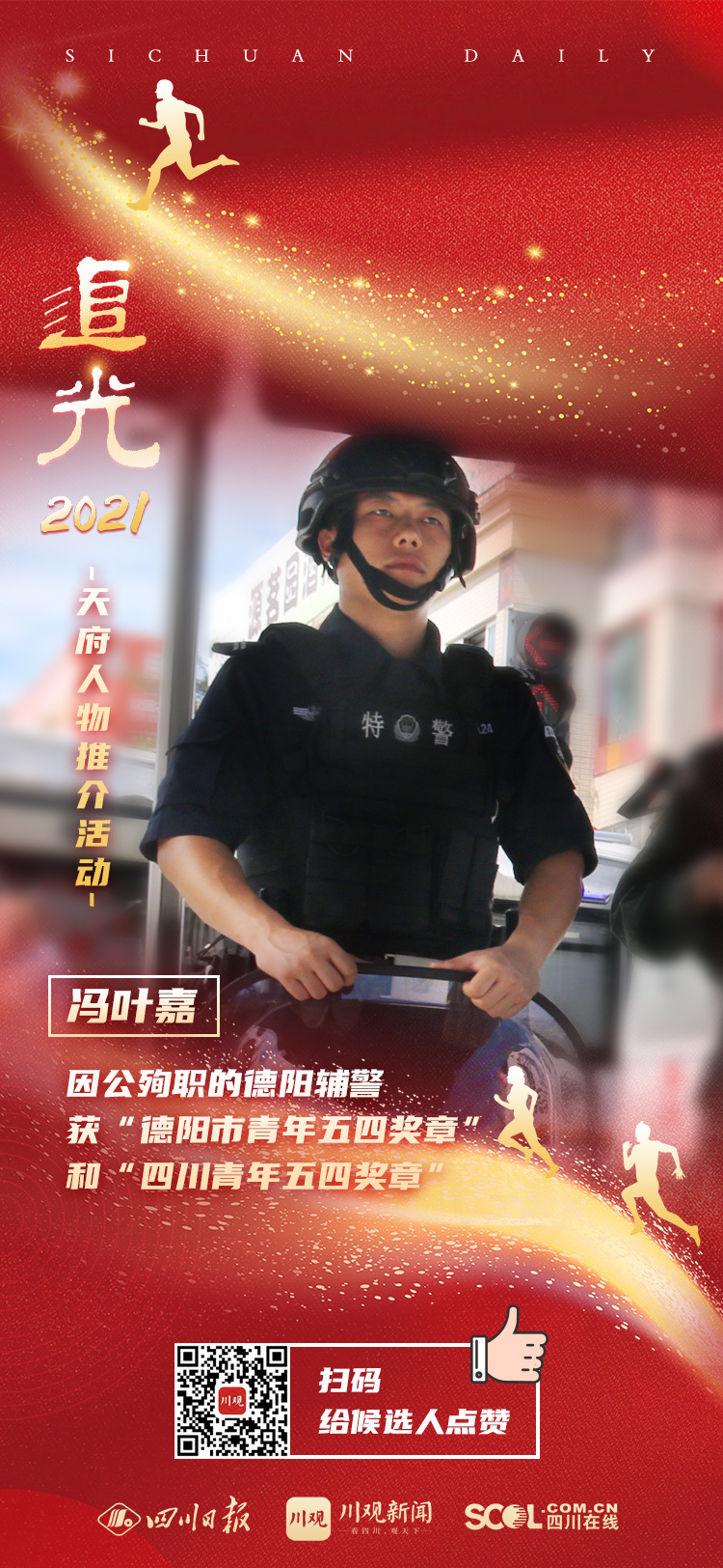 “这说明,辅警冯叶嘉的事迹,在公安干警和社会群众中反响强烈,深入人心。”“追光2021”天府人物推介点赞活动启动后,德阳市公安局相关负责人将链接和海报转发到德阳各级公安部门微信群。“我们并没有刻意‘刷票’,相信即使是素不相识的网友,也会被他的事迹感动。”