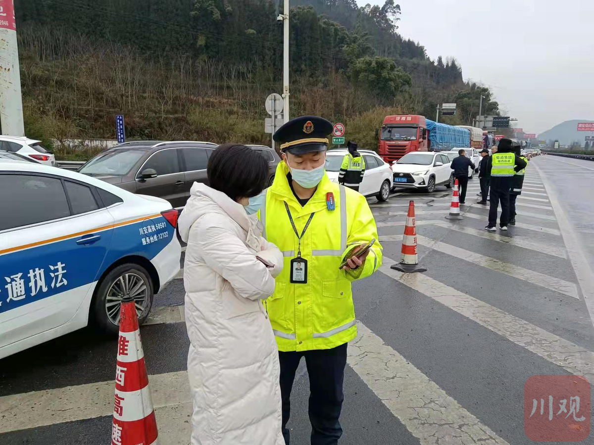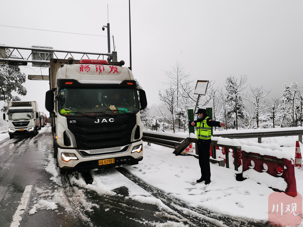 同时,交通执法与高速交警、路公司人员整合编队,通过布撒防滑沙、融雪剂、警车带行等方式引导滞留车辆通行泥巴山隧道路段。