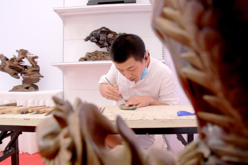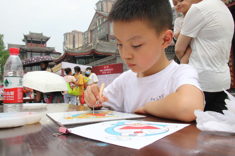 上午9时许,活动现场市民已经自觉排好队,准备欣赏连台好戏。活动开始后,川北大木偶、喻家六合拳、松溪内家拳、金钱板表演等,为市民带来了一场又一场视觉盛宴。现场传统手工技艺展同样是亮点纷呈,川北大木偶、金台镇制毛笔、棕编、景泰蓝金丝彩釉手工画、蜀绘丝绸山水染料画、面塑、根雕、古法制香、古民居营造技艺、李氏制古琴等10多个非遗文创产品,大多都有优惠活动,引来了市民驻足欣赏和购买。