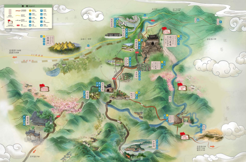 行程推荐: 朝天曾家山→剑门关景区→双旗美村→翠云廊→拦马墙→东宝镇→方特东方神画(主题乐园)