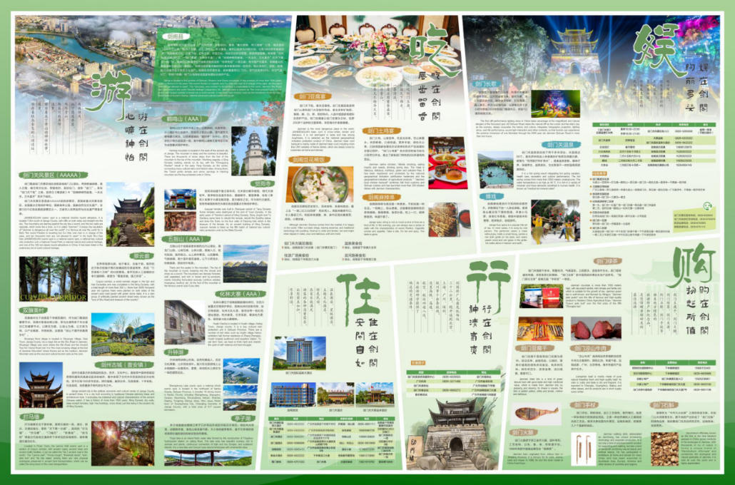2. 剑门关景区的活动最精彩,拦马墙的古柏最原始,双旗美村的萌宠最可爱,剑门关古镇的豆腐宴最好吃,剑州古城的麻辣串最地道,东宝镇的柑橘最香甜。剑阁县城的两家温泉酒店最舒服,剑门印象的特产最丰富。