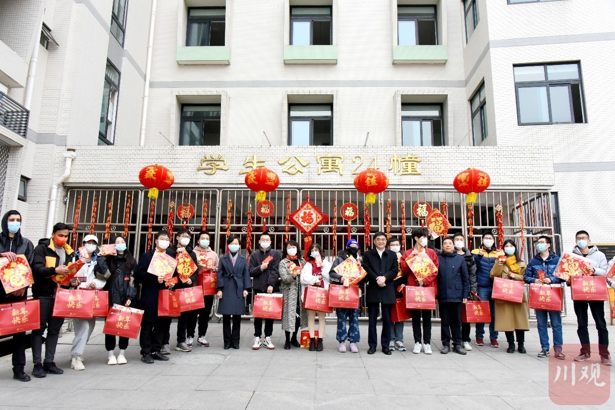 各学院领导和辅导员老师也通过深入寝室走访、开展迎新春茶话会等方式开展慰问活动,为留校学生送去了牛奶、饼干、水果等新春礼包和防疫物资。有的辅导员还把留校学生邀请到自己家里吃团年饭,共迎新春。