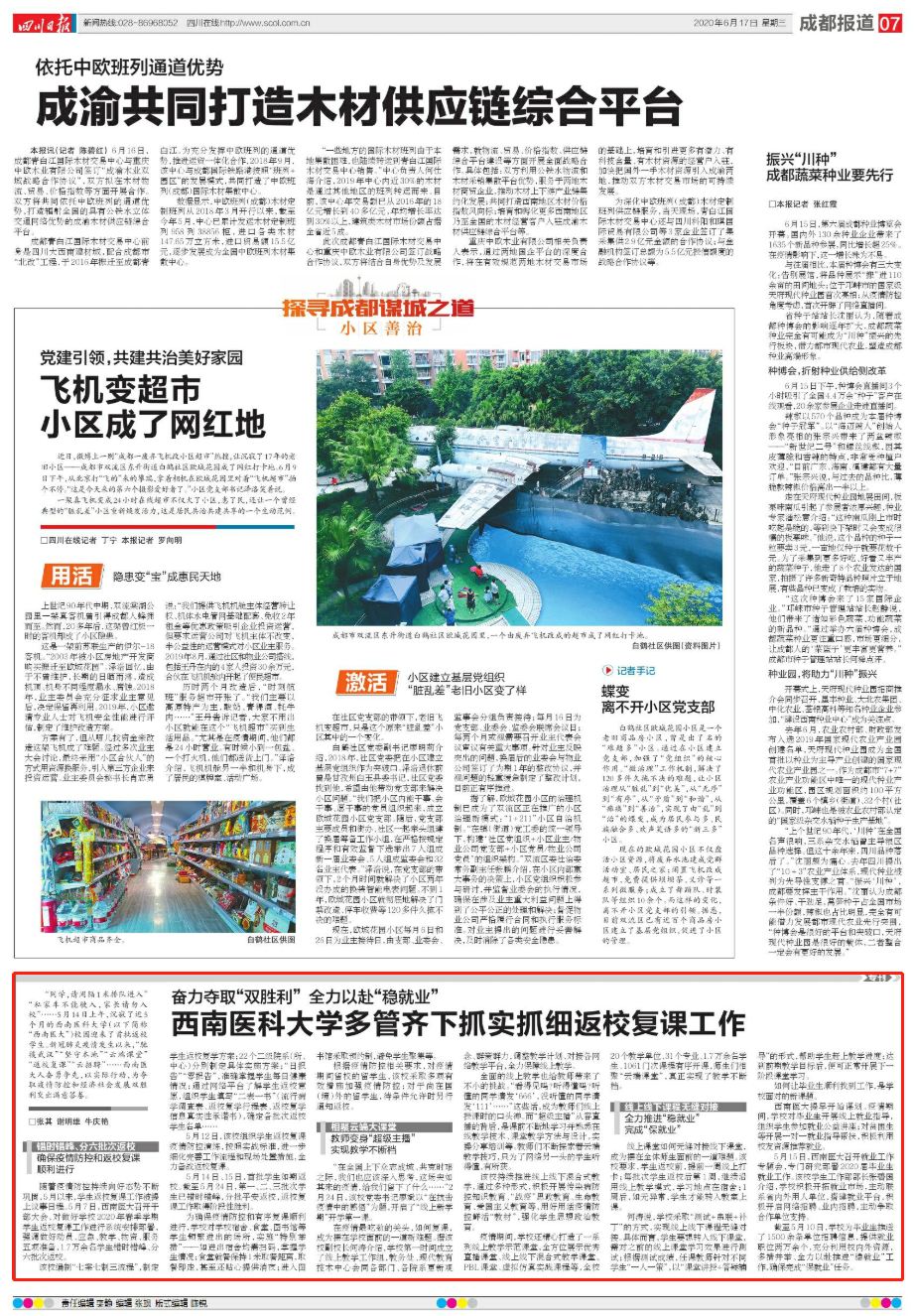 “同学,请间隔1米排队进入”“私家车不能驶入,家长请勿入校”……5月14日上午,沉寂了近5个月的西南医科大学(以下简称“西南医大”)校园迎来了首批返校学生。新冠肺炎疫情发生以来,“驰援武汉”“坚守本地”“云端课堂”“返校复课”“云招聘”……西南医大人奋勇争先,以实际行动,为夺取疫情防控和经济社会发展双胜利交出满意答卷。□张其 谢明雄 牛庆艳