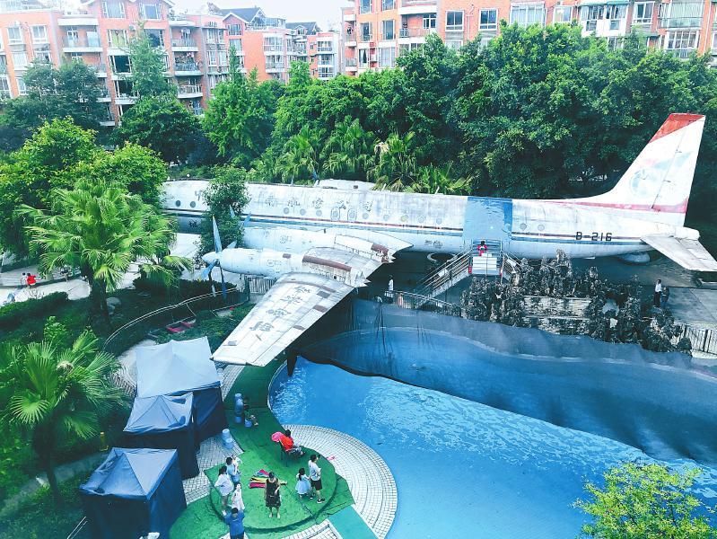 成都市双流区东升街道白鹤社区欧城花园里,一个由废弃飞机改成的超市成了网红打卡地。白鹤社区供图(资料图片)