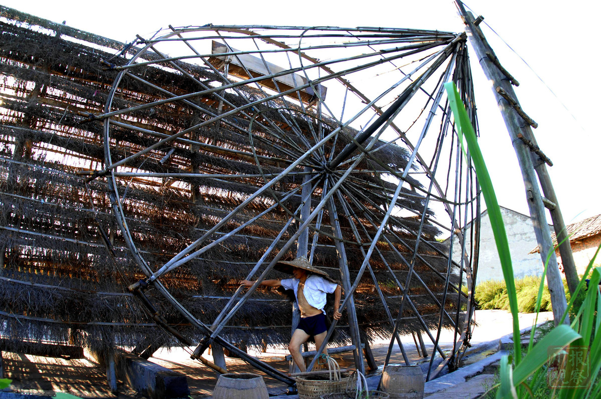 来到卓筒井架前,可以看到,井架“默默地”藏在川东丘陵之中,其“身高”不足10米,井架和配套物完全由竹质和木材料构造而成。瘦峋单薄的身躯,闪着古铜色一般的光亮,有如朴实的老农,在风雨阳光中坚韧地挺立。千年卓筒井开创了世界机械钻井之先河。