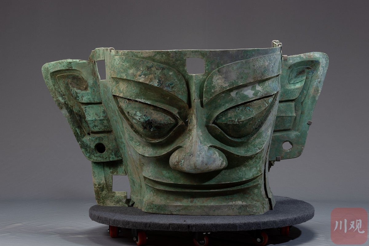 清理后大面具一展威仪(三星堆博物馆供图)