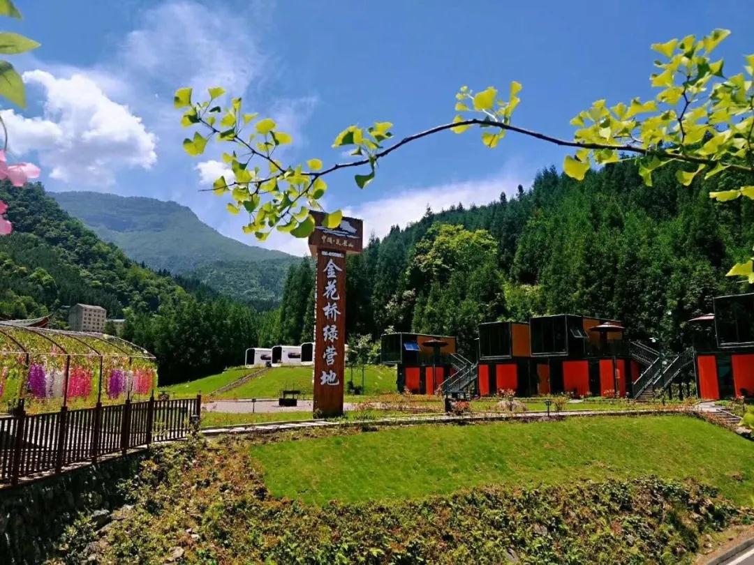 金花桥绿营地,坐落于瓦屋山景区入口,朝田坝露天停车场旁,占地总面积约5000多平米,山林环抱,依水而建,山花烂漫,绿树满营。