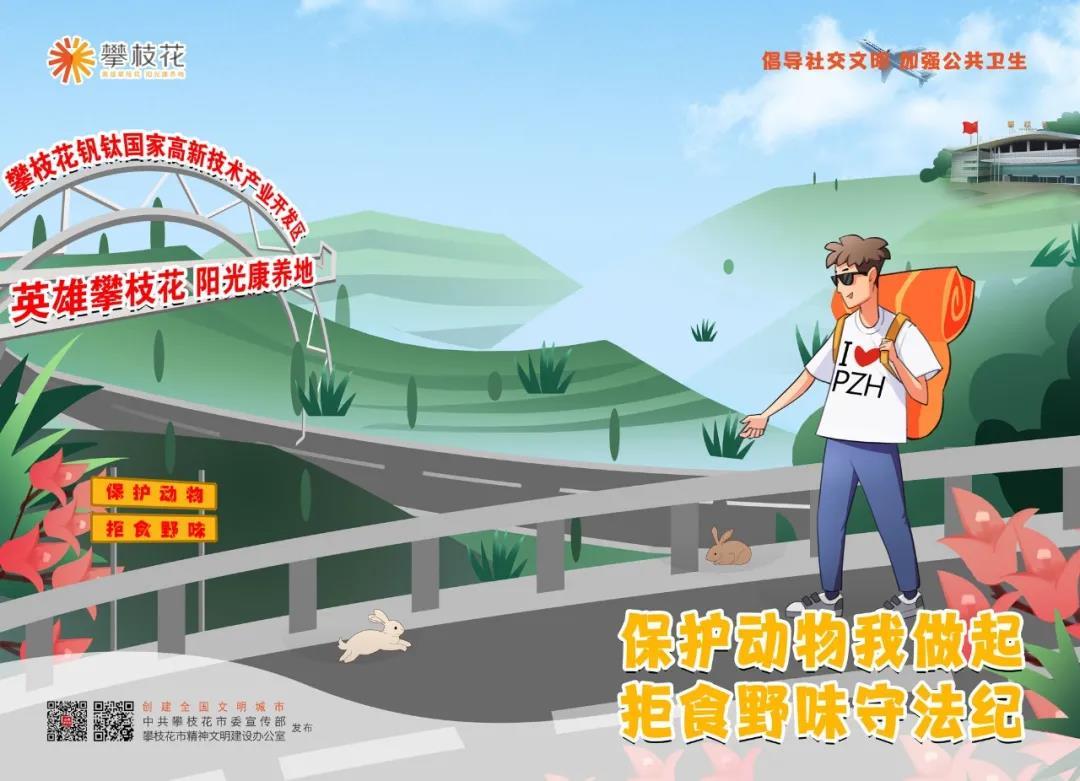 同期上线的还有10幅系列原创公益海报,将分批投放到攀枝花市各个区县、街头巷尾、公园广场、学校社区、窗口单位、商场剧院等地,让市民在潜移默化中规范自己的行为。
