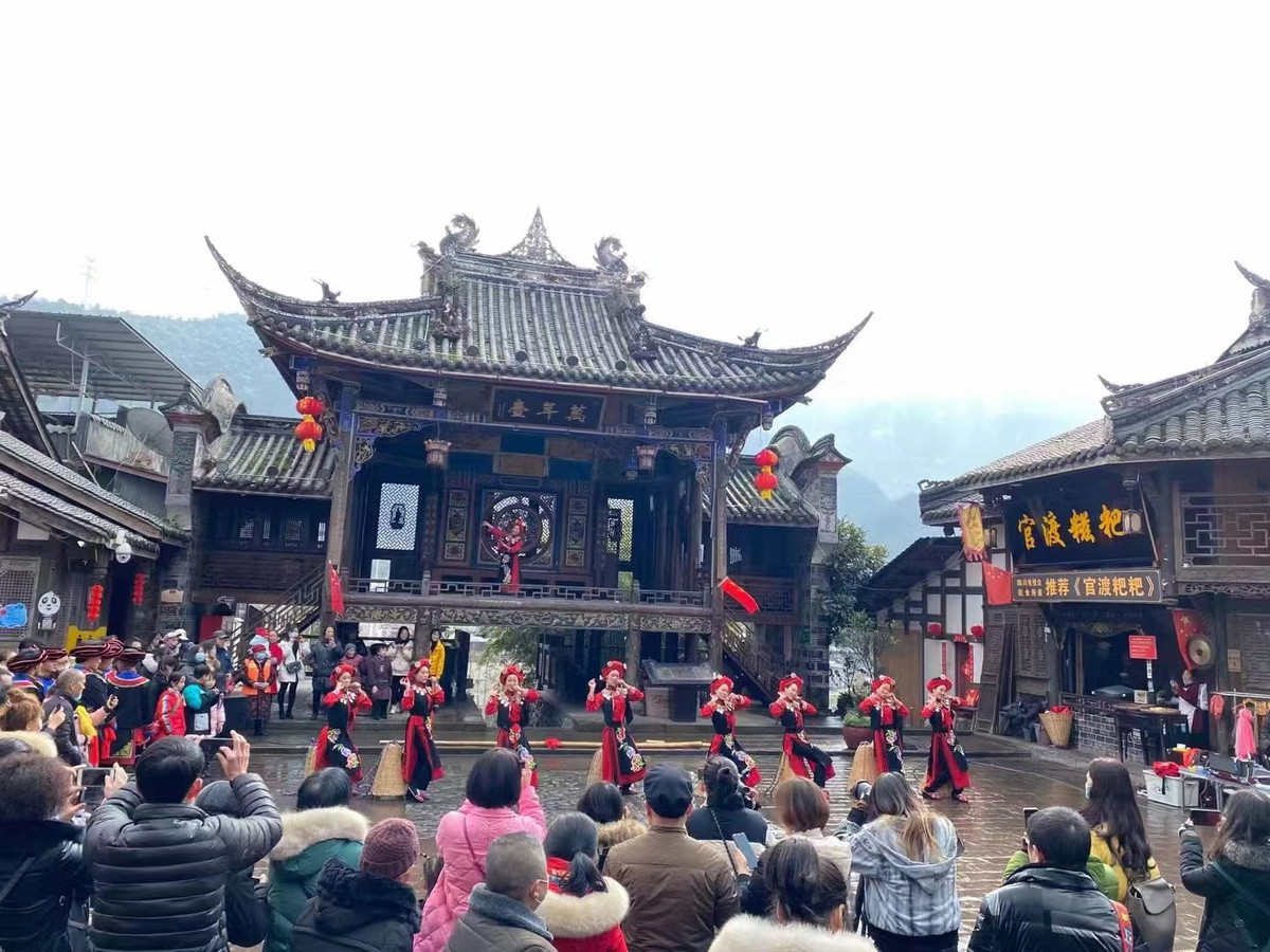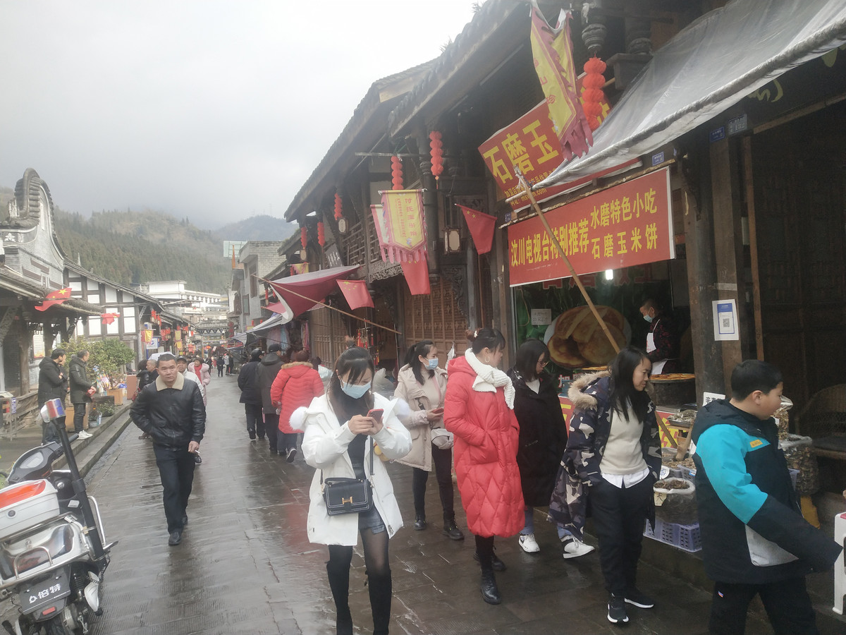 2022年春节假期第三天,汶川天气小雪,游客的出游热情依然高涨。