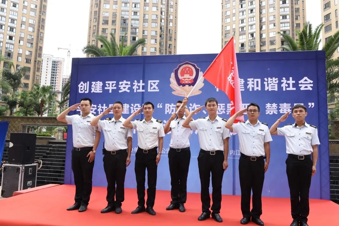 6月18日,内江平安社区建设暨“防电诈、惩黑恶、禁毒品”宣传月活动在邦泰国际社区正式启动。