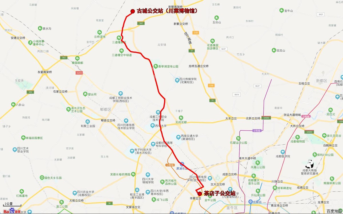起讫点:茶店子公交站—古城公交站(川菜博物馆)