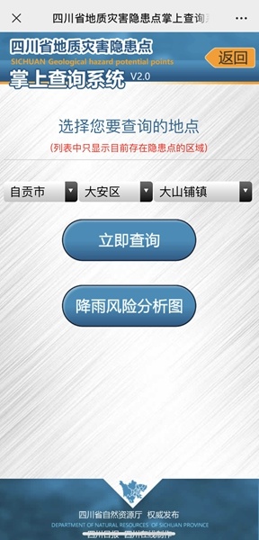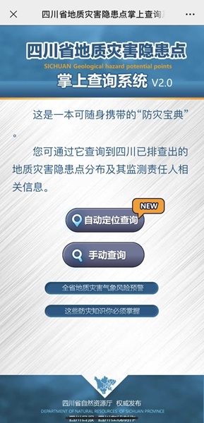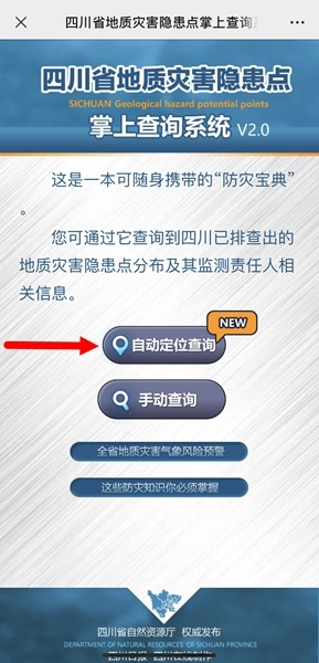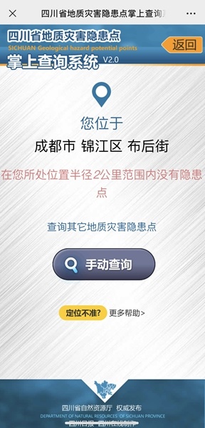 A. 可基于手机定位点,查询身边半径2公里范围内的地灾隐患信息,直接在首页点击“自动定位查询”即可;