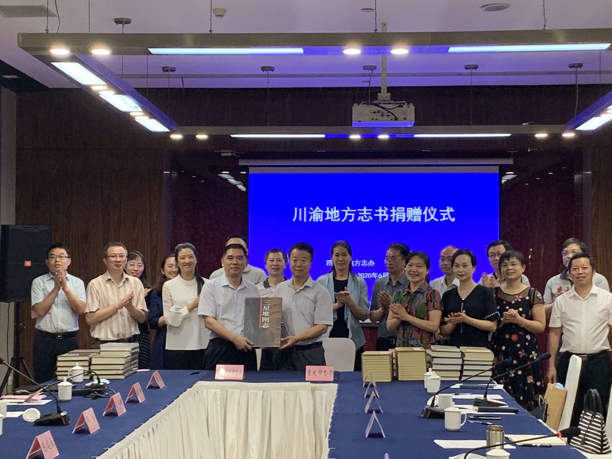 座谈会上,双方介绍了近年来地方志工作开展情况,并围绕志鉴编纂出版、地方志成果交流共享、巴蜀文化宣传弘扬以及如何更好服务成渝双城经济圈建设等进行了深入交流。座谈会还举行了志书捐赠仪式,双方互赠《明万历重庆府志》(线装影印版)《重庆图志(1949—2019)》《四川历代方志集成》(1至4辑)《大熊猫图志》等21种地方志书365册,重庆市地方志办还向四川省地方志办赠送珍贵的1952年西南军区区划图。