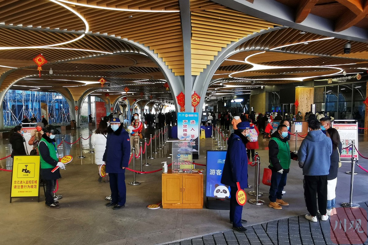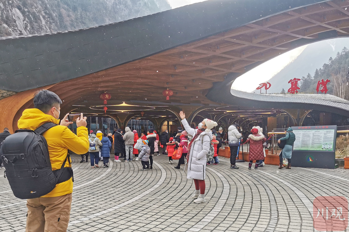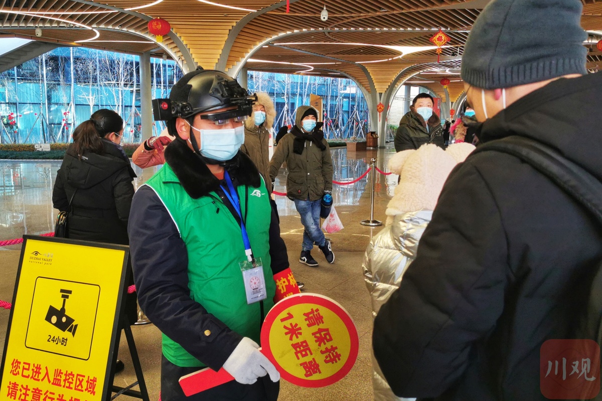 2月3日,大年初三,在九寨沟景区游客中心入口处,往来游客正在工作人员的指挥协调下,进行亮码、测温等常态化疫情防控措施后,游客们有序地步入九寨沟,乘坐观光巴士前往不同景点。这是九寨沟景区全域恢复开放后迎来的首个春节旅游季。
