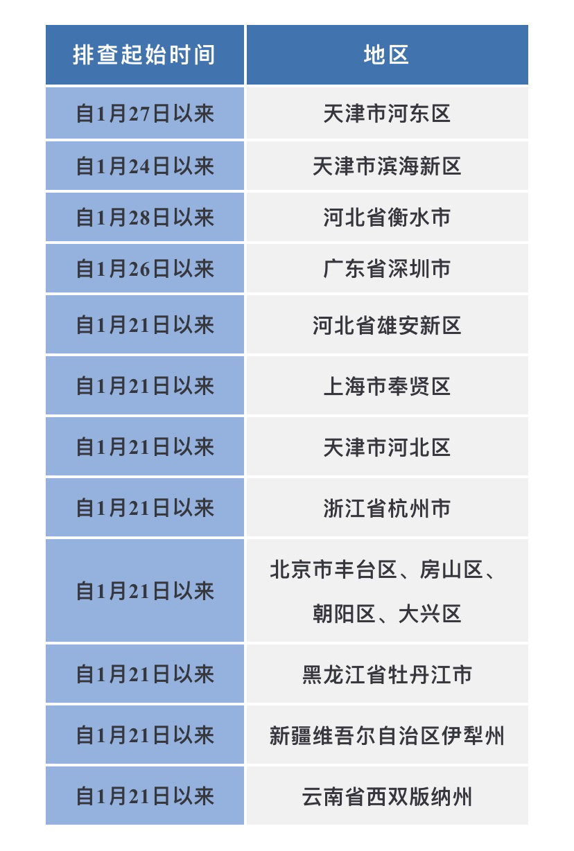 如果您近期有以下地区的旅居史,请第一时间向村(社区)、单位或入住酒店报备,配合做好各项疫情防控工作。