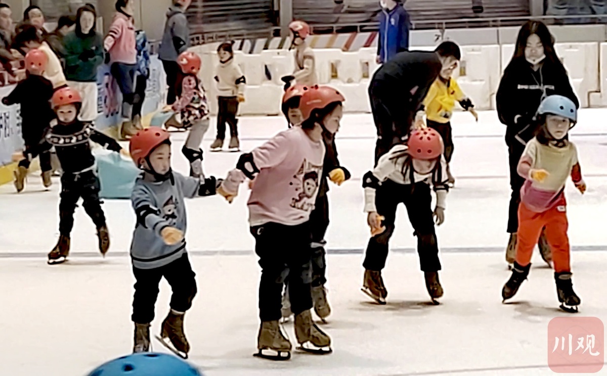 正值新春佳节,又逢冬奥盛会,成都市内的各大室内冰场热闹非凡。
