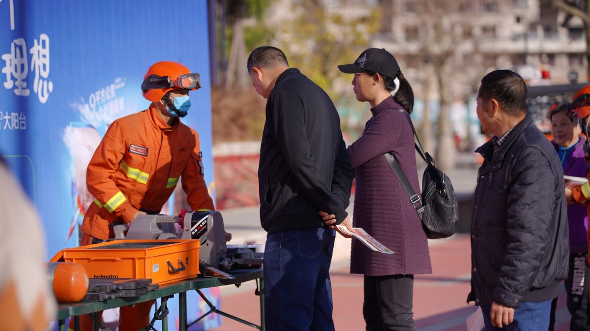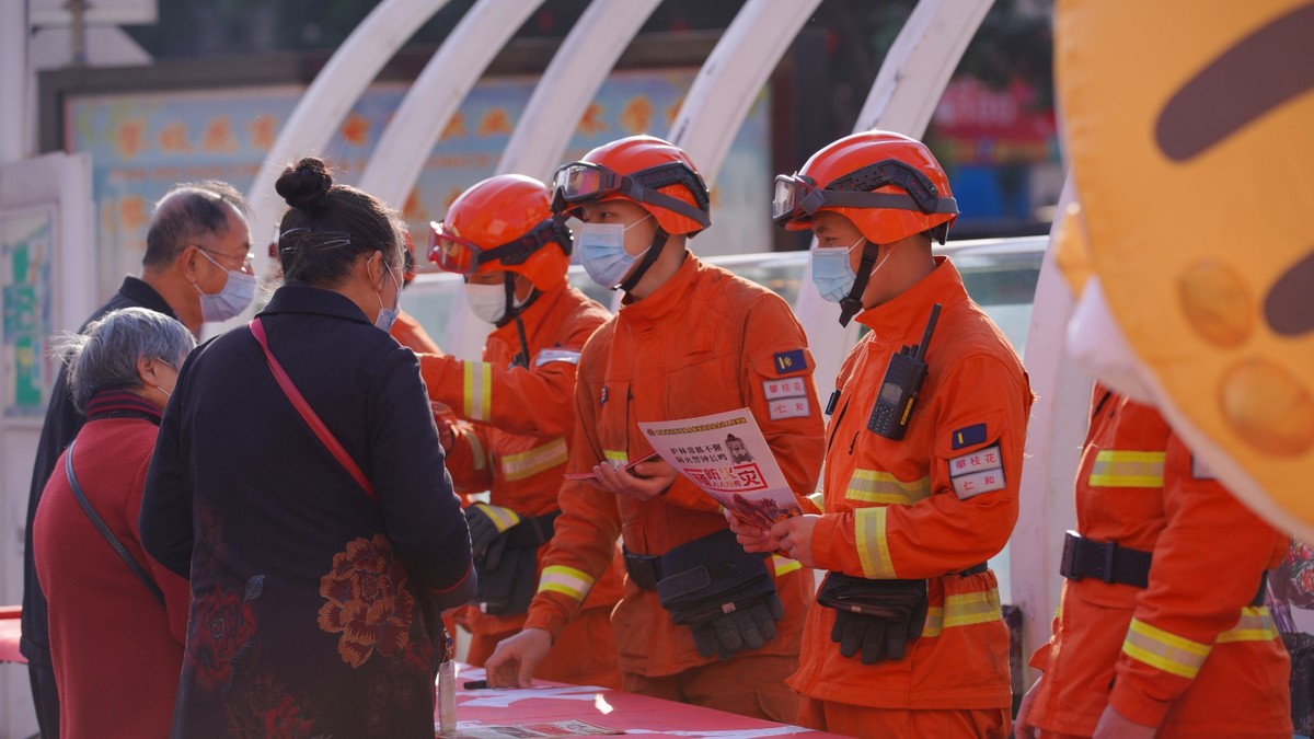 春节期间,消防员们开展防火专项行动,向过往市民游客发放防火宣传单。