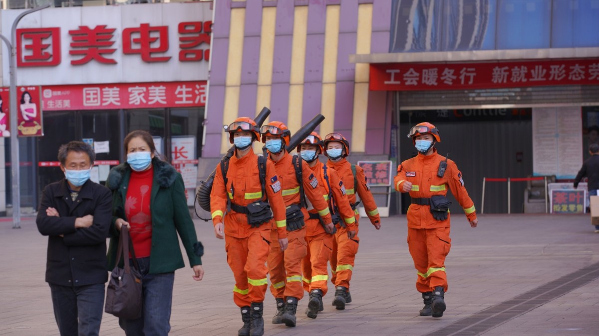 身着灭火服,腰扎腰带,脚蹬灭火靴,头戴灭火头盔。从前年开始,一级消防士何胜勇的节日都是在执勤的岗位上度过的,即使是新年也不例外。不一样的是,这一套执勤装备中,多加了一副口罩。
