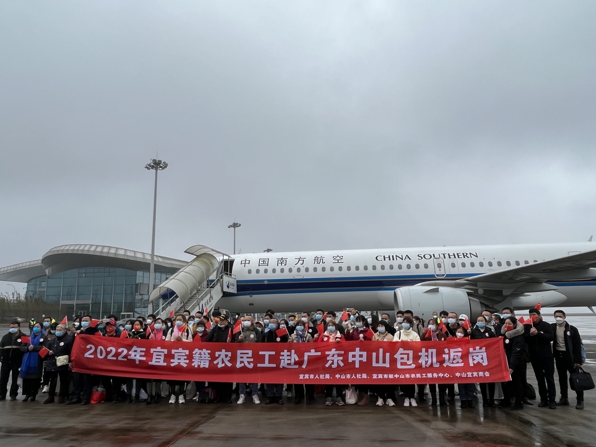 “广东省中山市人社部门和中山宜宾商会已安排好接驳车辆,飞机抵达广州白云机场后,将由专车将农民工接到厂里,统一进行核酸检测,确保路途安全,顺利返岗。”宜宾市人社局农民工工作科科长朱兵介绍,为组织好当天的包机活动,宜宾市人社部门联合中山市人社部门、中山宜宾商会、宜宾市驻中山市农民工服务中心提前谋划精心组织,目的就是保障农民工“点对点,一站式”顺利返岗。