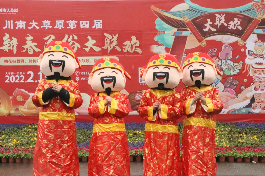 在黄鹤湖旅游区,川南大草原景区推出了新春民俗大庙会吸引游客。梅花桩舞狮、财神送福、歌舞演绎、特色美食汇、玩偶互动,营造出浓浓的年味。此外,景区内的七彩旱滑、玻璃水滑道、射箭、草原卡丁车、空中飞翼等20多项游乐项目为春节假期增添了一份乐趣。