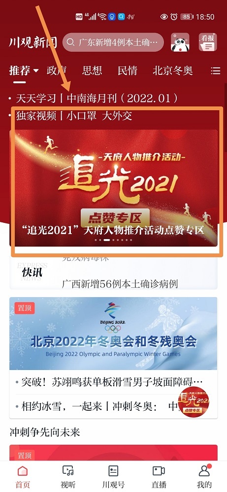 一、登录川观新闻客户端,在首页幻灯区或悬浮球位置进入“追光2021·天府人物”点赞通道
