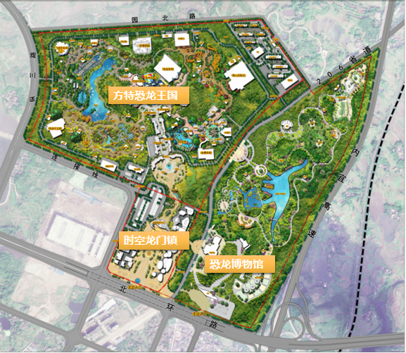该项目位于自贡方特恐龙王国正前方,紧邻自贡恐龙博物馆,是自贡文旅投投资、建设、运营的特色商业综合体,建筑面积3万平方米,总投资约7.2亿元。