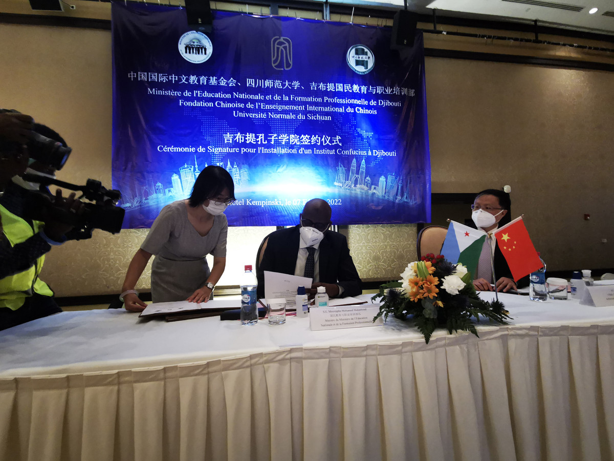 北京时间2月7日下午,吉布提孔子学院合作协议签约仪式举行。中国国际中文教育基金会、吉布提共和国国民教育与职业培训部、四川师范大学三方正式签署协议,共建吉布提第一所孔子学院。协议的签署标志着四川省高校在非洲的第一所孔子学院正式建立。