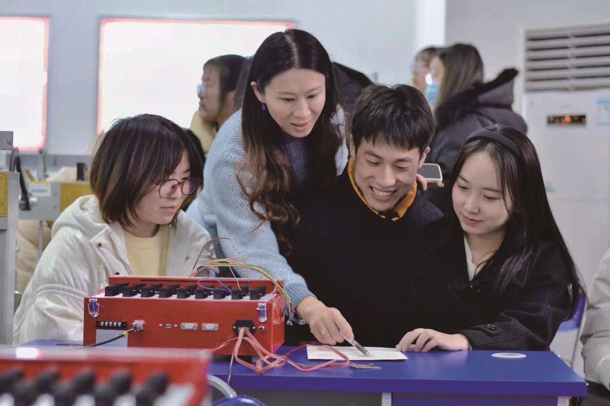 西华大学工程造价系教工党支部书记李海凌指导学生实验。(陈金豪 摄)