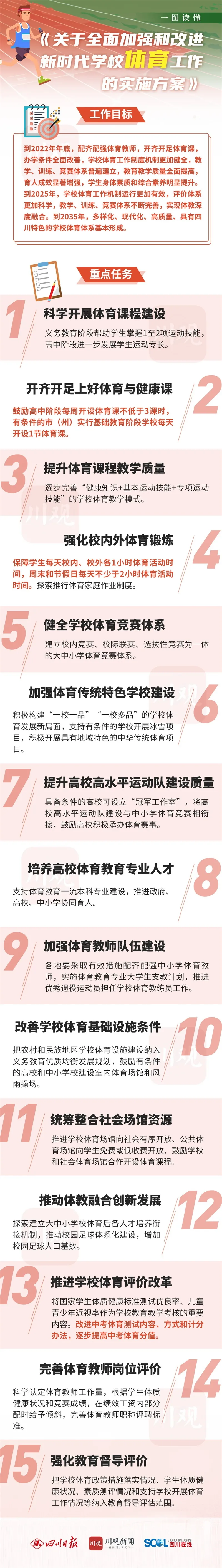 《关于全面加强和改进新时代学校体育工作的实施方案》全文如下。