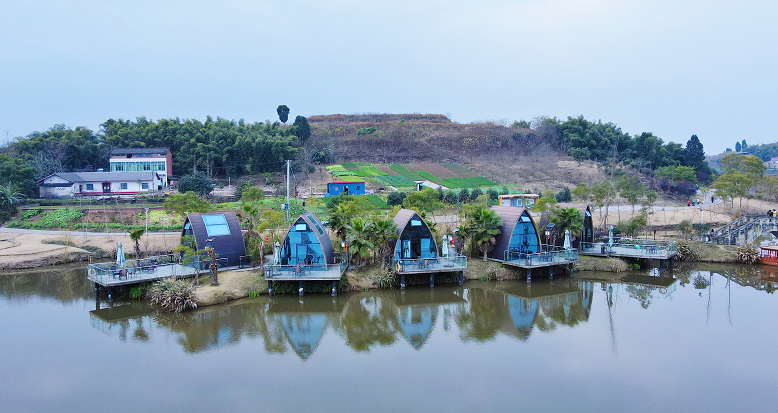 游有湖光山色、田园景致,玩有亲子乐园、农耕体验,吃有生态美食、农家味道,住有康桥别院、汽车营地、星空船坞……2月4日,内江威远县界牌镇桥凼村康桥·水乡旅游景区,尽管天气寒冷,但村子里热度不减,来自成都、自贡、泸州等地车牌将村子里的停车场全部停满。