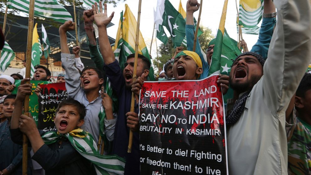 巴基斯坦民众抗议印度对巴控克什米尔地区的袭击(图源:美联社)