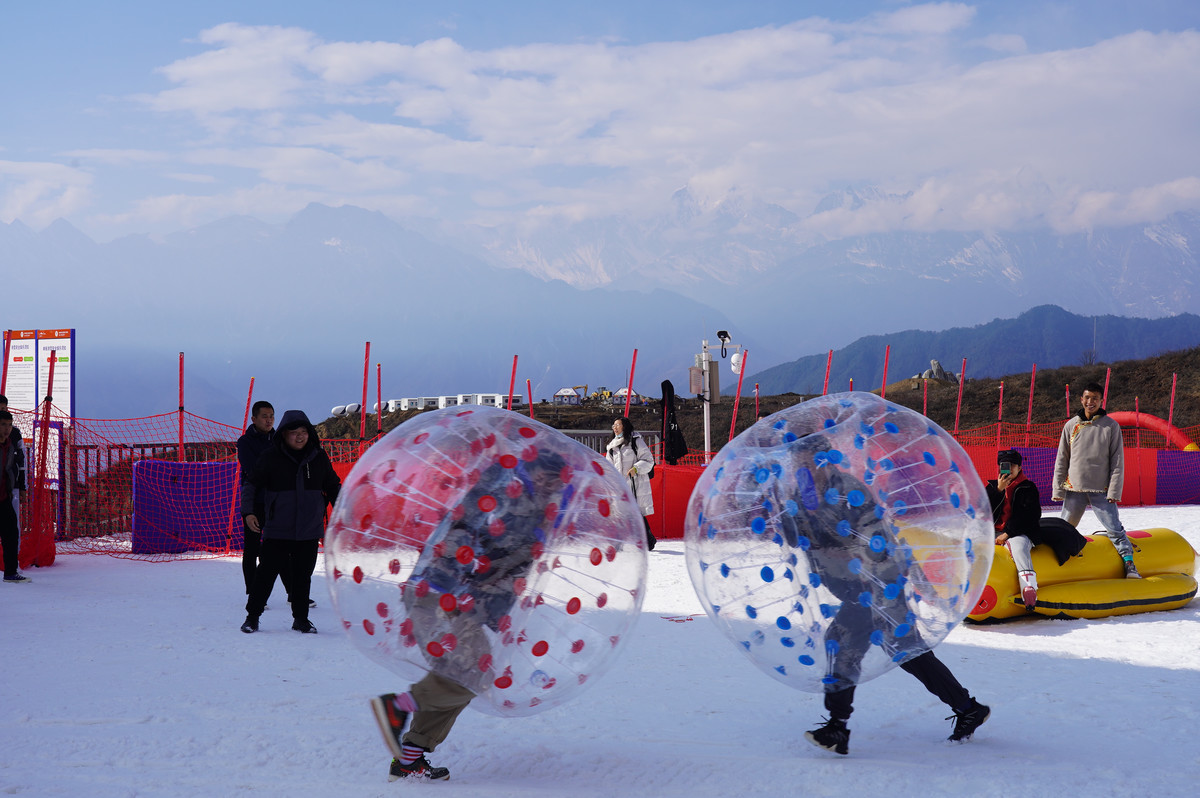 在2万余平方米的戏雪区,还有雪圈、雪地坦克、雪上飞片、雪地碰碰球等多种娱乐项目。春节期间,王岗坪旅游景区还特别开设金山祈福、献哈达等新春活动,让游客享受冰雪乐趣的同时,在滑雪场也能感受浓浓年味。