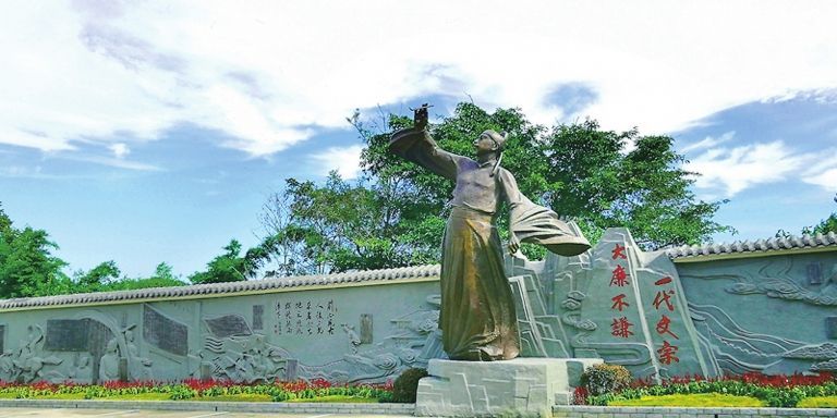 如今蜀中名山——金华山的“陈子昂读书台”里,尽管并无黄金铸造的陈子昂像,但是一千多年过去了,陈子昂读书台虽然历经磨难,几经损毁,又几经重建,而前来瞻仰的人们依然络绎不绝!金华山后山屹立的展示陈子昂风骨的青铜像,读书台下矗立的唐代御史大夫立的旌德碑,依然让来者们肃然起敬!陈子昂在人们的心中,永远是那个正直、刚毅、文采斐然的一代文宗。