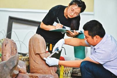6月17日,安岳县文保中心工作人员对新发现的文物登记入库。